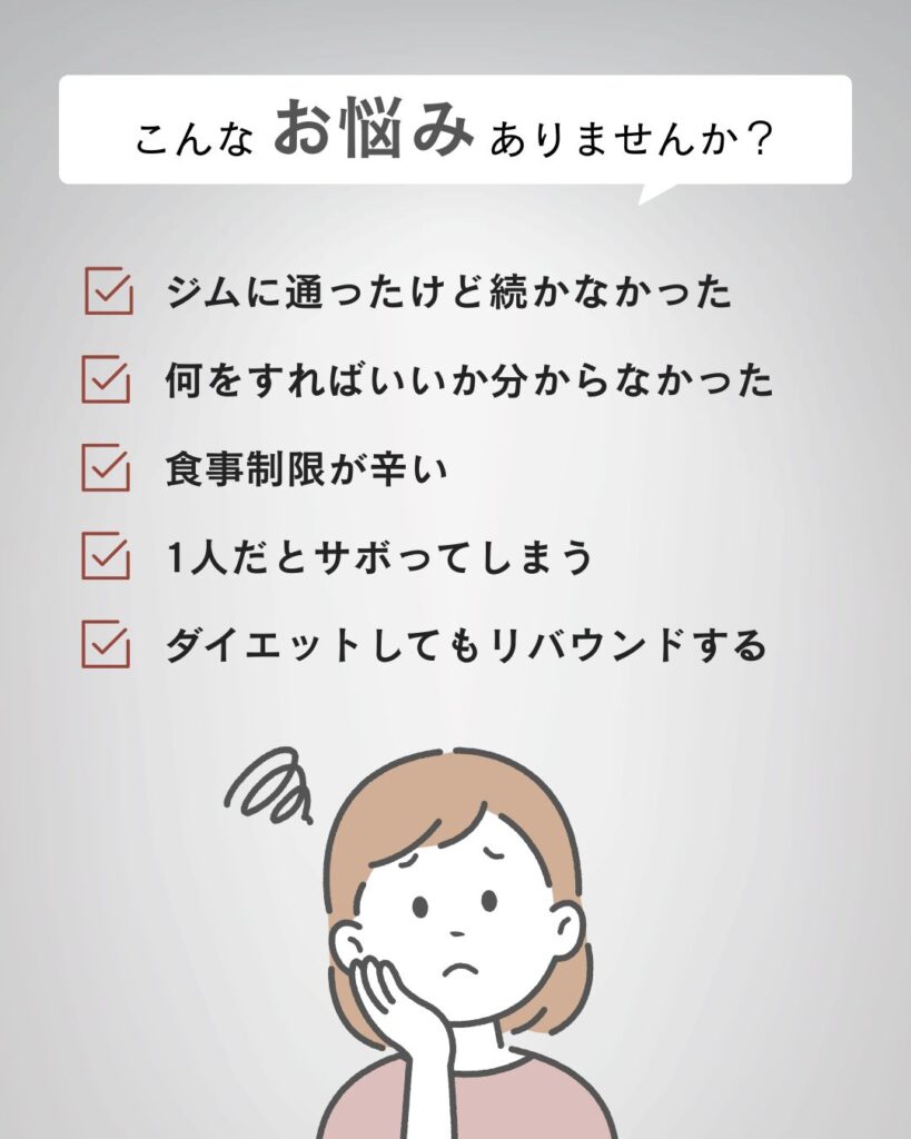 ダイエットやボディメイクは一人で行うにはなかなか難しく不安なこと、わからないことがたくさんあるかと思います。